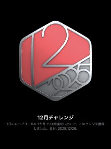 スポンサーリンク 2025年12月チャレンジ 日記Screenshot X Mastodon Bluesky Facebook はてブ LINE コピー 2025.12.262025.12.31 今月のチャレンジは,ムーブゴールを13回達成するというもの。 そんなに苦労せず完成。 Screenshot メデタシメデタシ。