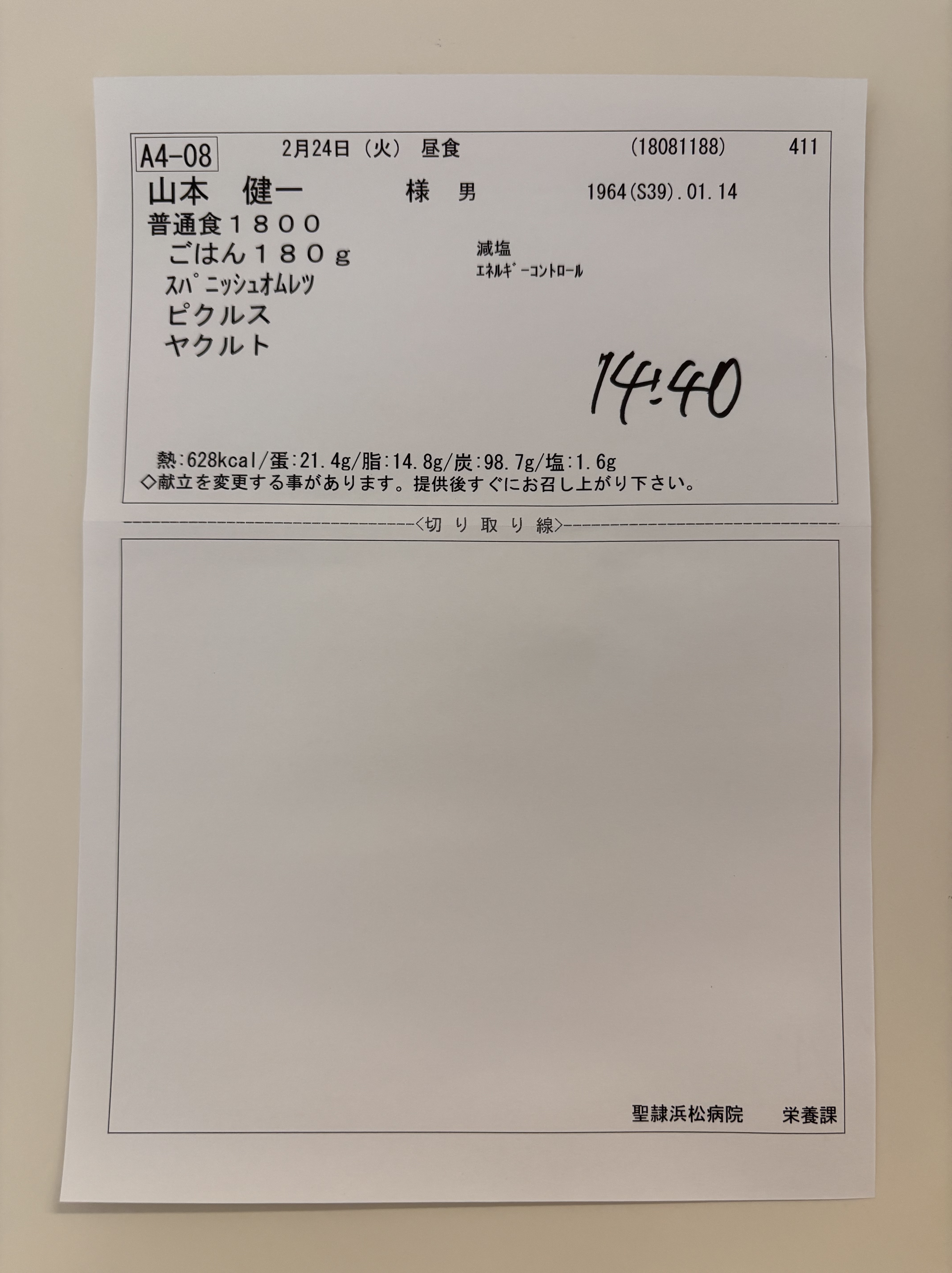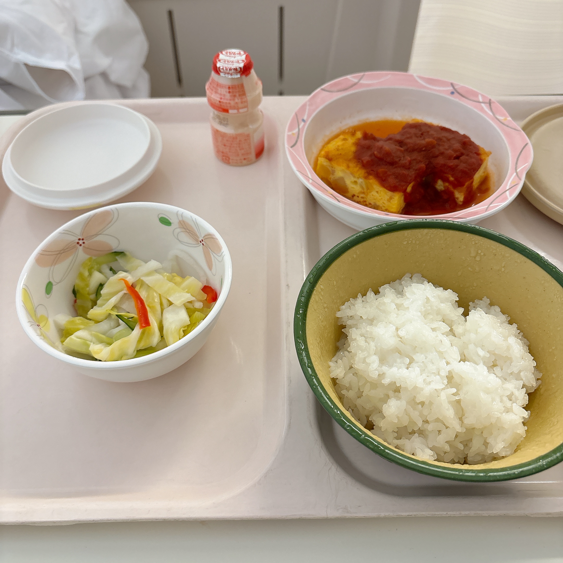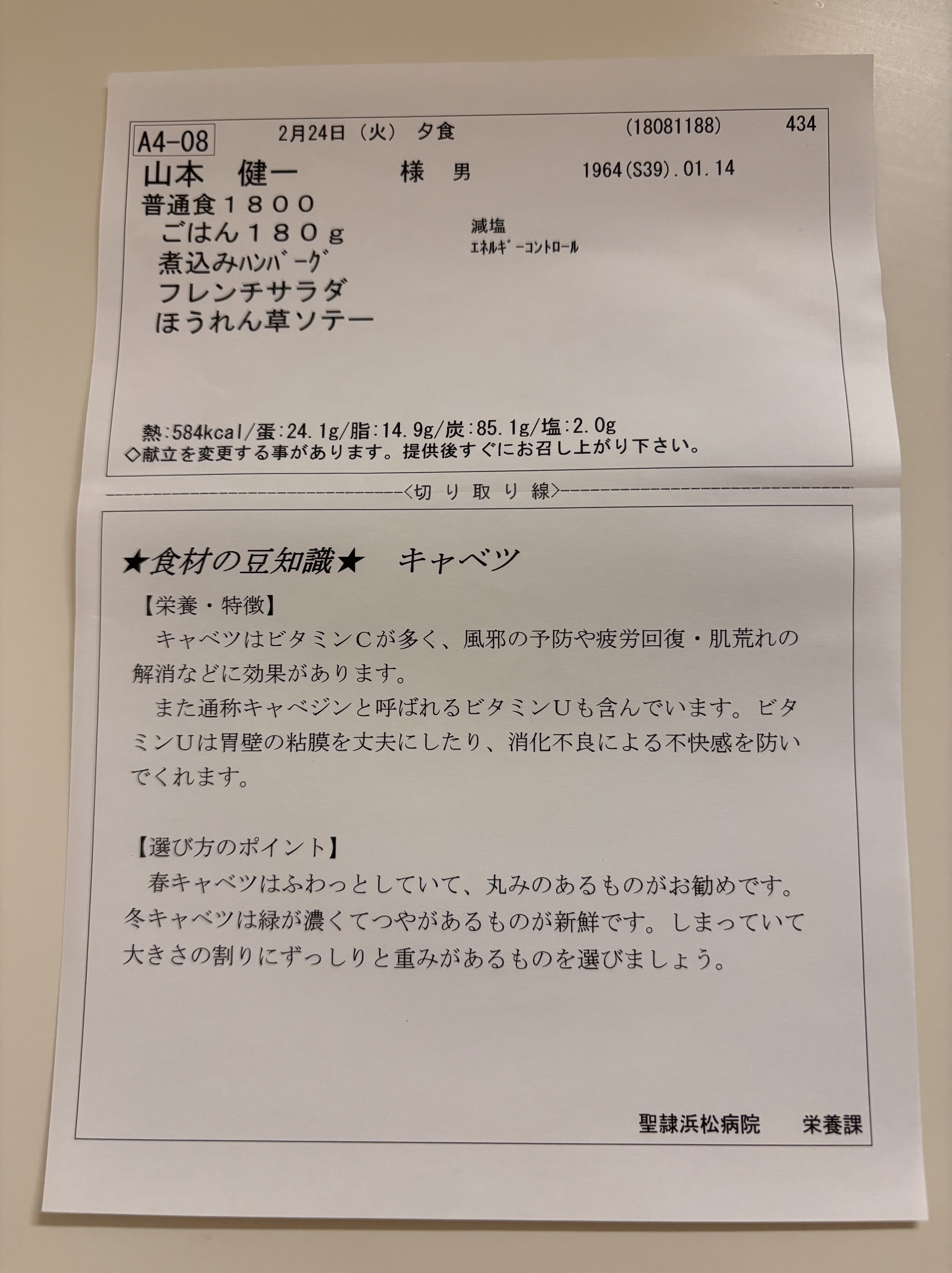 病院食だからか,ほうれん草ともども柔らかくできていて,イマイチの食感。