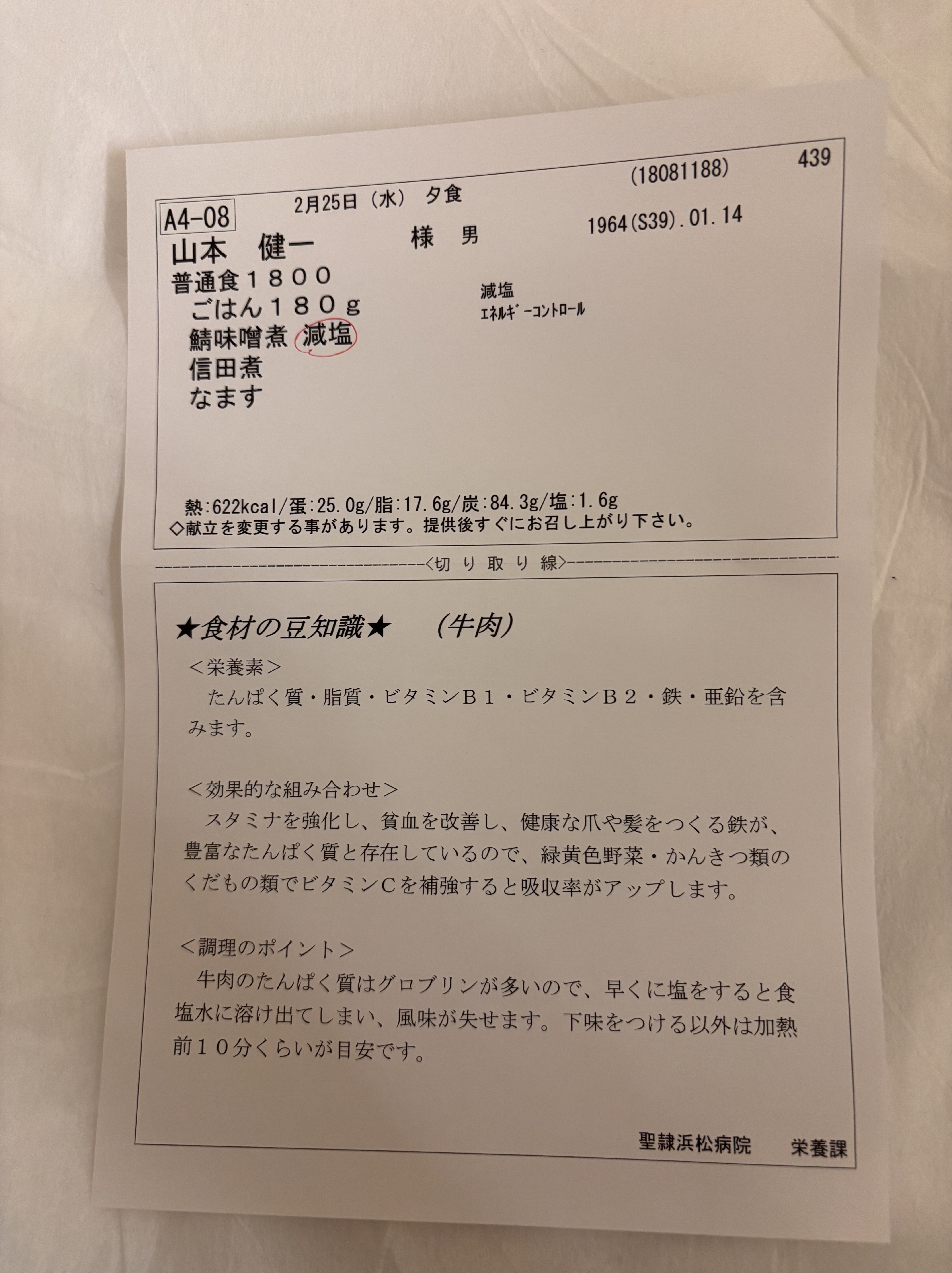 26日には退院予定なので,選択食を選べない…